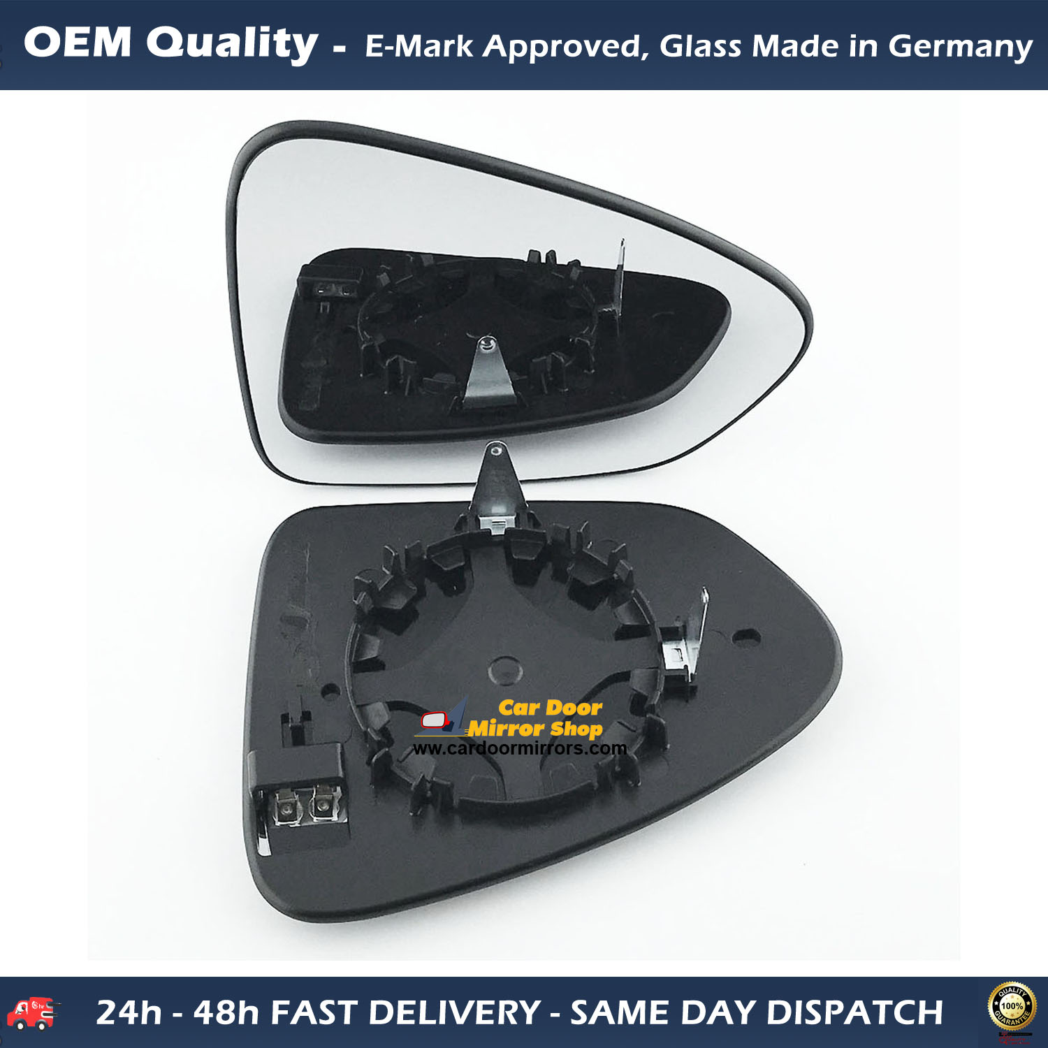 Heated, Silver Mirror Glass Pre fitted Backing Plate, Clip On OEM Quality Ready to Fit ( Heated and Non Heated Mirror Units )